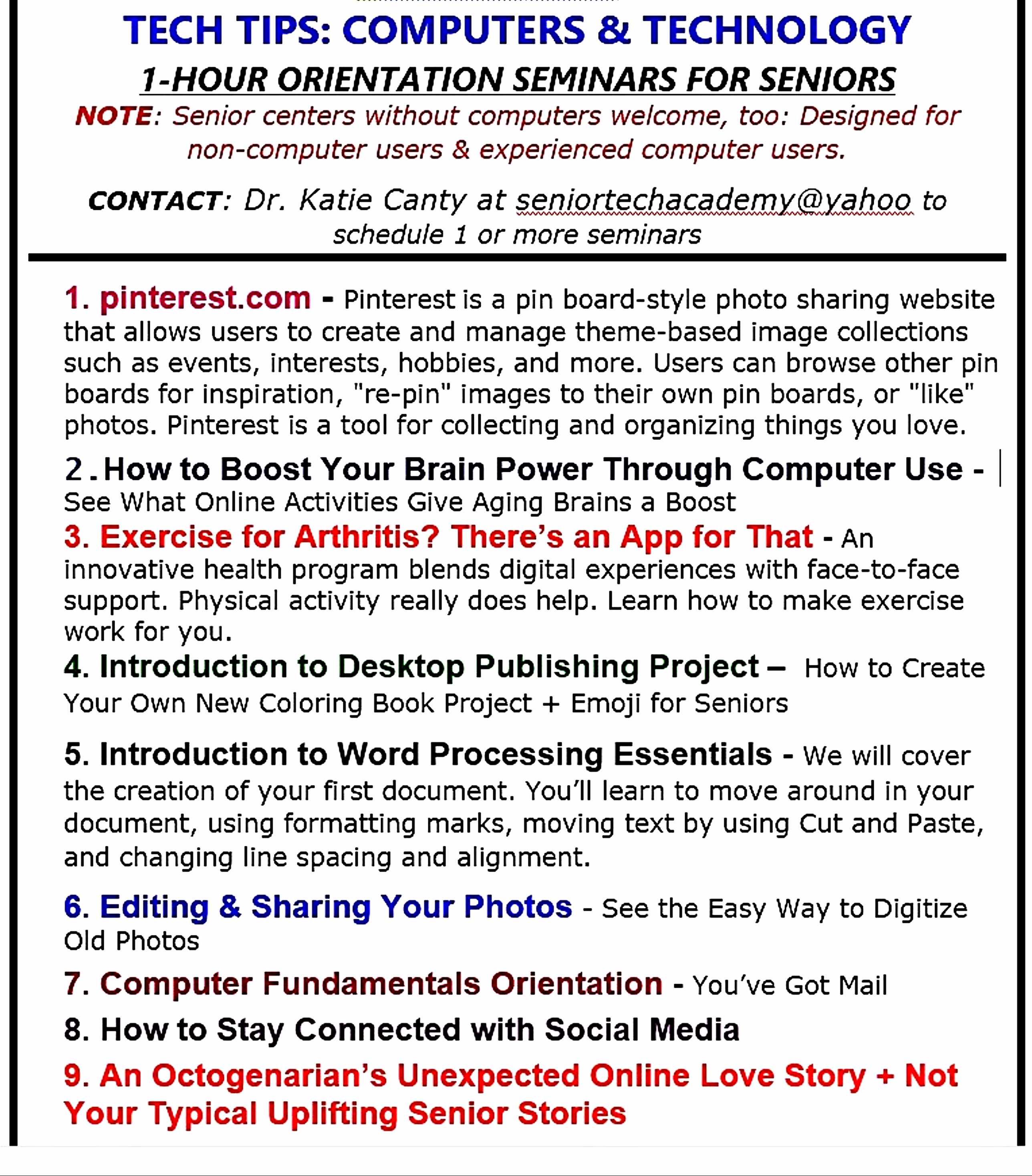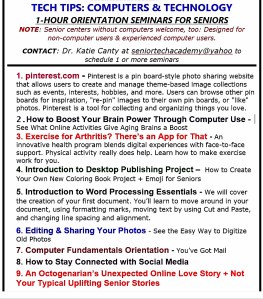 News Tech 1-Hour Seminars for Senior Centers July 24, 2017July 24, 2017 ~ seniorlifetech Be sure to send this list of seminars to your nearest senior center.