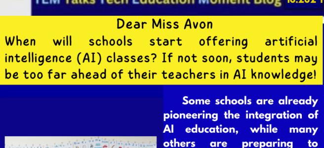 How Soon Will Schools Offer AI Classes? Ask Miss Avon Tech Education Moments (TEM) Talks Image ~ September 25, 2024 ~ seniorlifetech